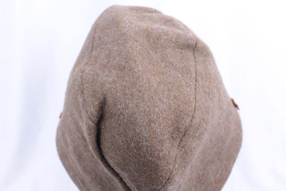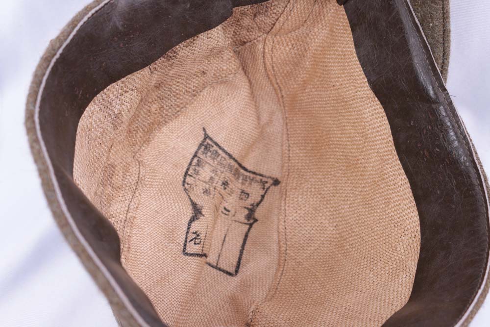This is an exceptionally hard‑to‑find Type 3 wool field cap issued to the Imperial Japanese Navy during WWII. While cotton field caps appear with some regularity, the wool model is far scarcer—produced in smaller quantities and typically associated with Naval Landing Force (Rikusentai) units. Comparable Type 3 naval caps appear only occasionally on the market, often described as uncommon or premium examples. Features bevo-woven anchor, woven mat style liner, stamped arsenal tag, size 2- medium.
